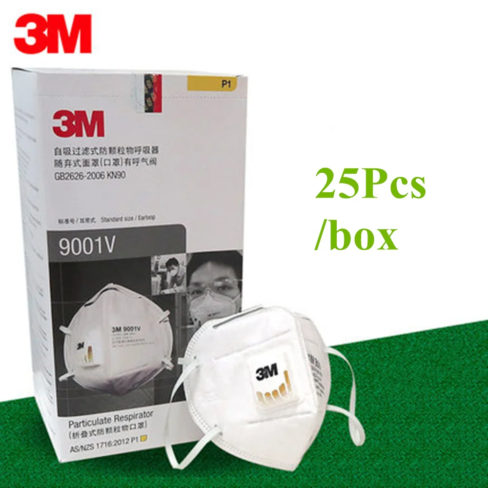 TOP 25Pcs/lot 3M 9001V KN90 Vent Anti-dust Masks Anti PM2.5 Industrial Construction Dust Pollen Haze Ga
