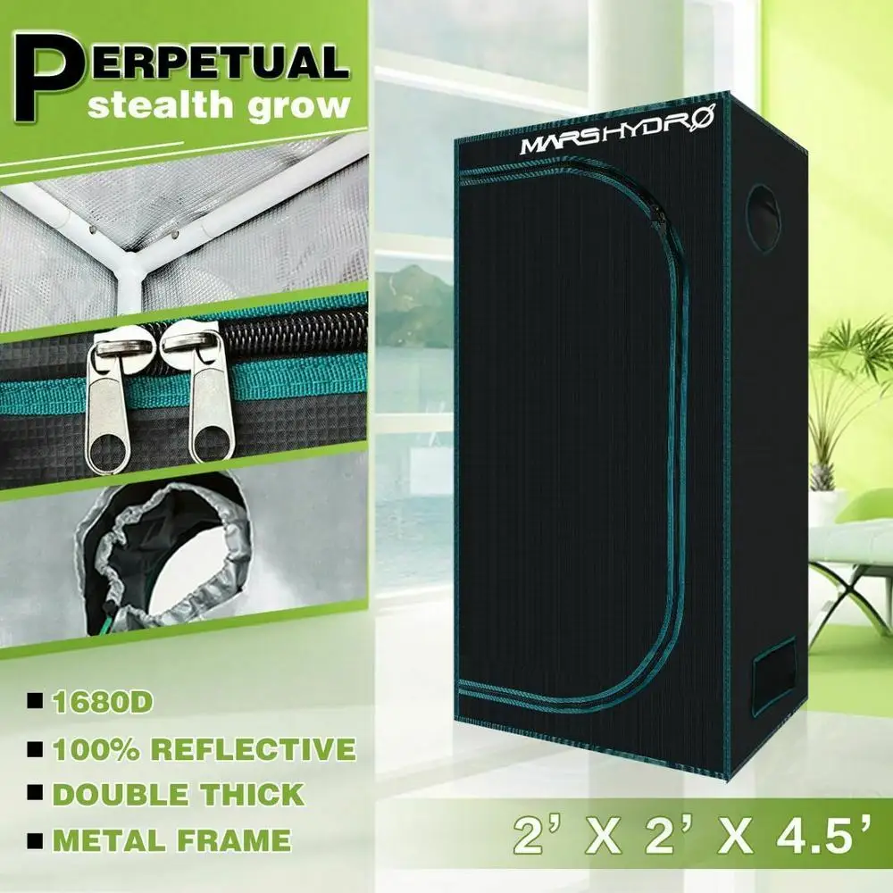 Best MarsHydro 1680D 60x60x140cm Grow Tent Diamond Reflective Mylar Indoor Hydroponics Grow Tent (24''x2