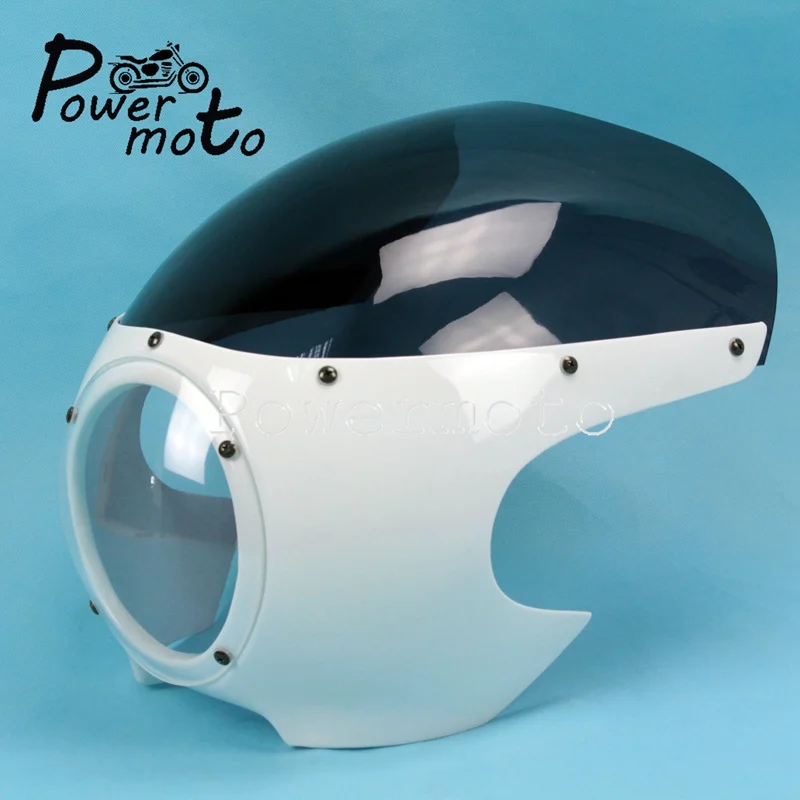 Universal Classic Drag Cafe Racer 5.75" Headlight Fairing 5-3/4" Cut Front Mask Cowl Windshield For